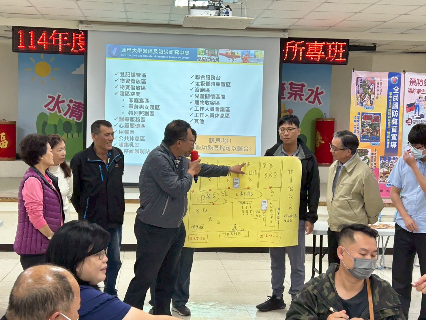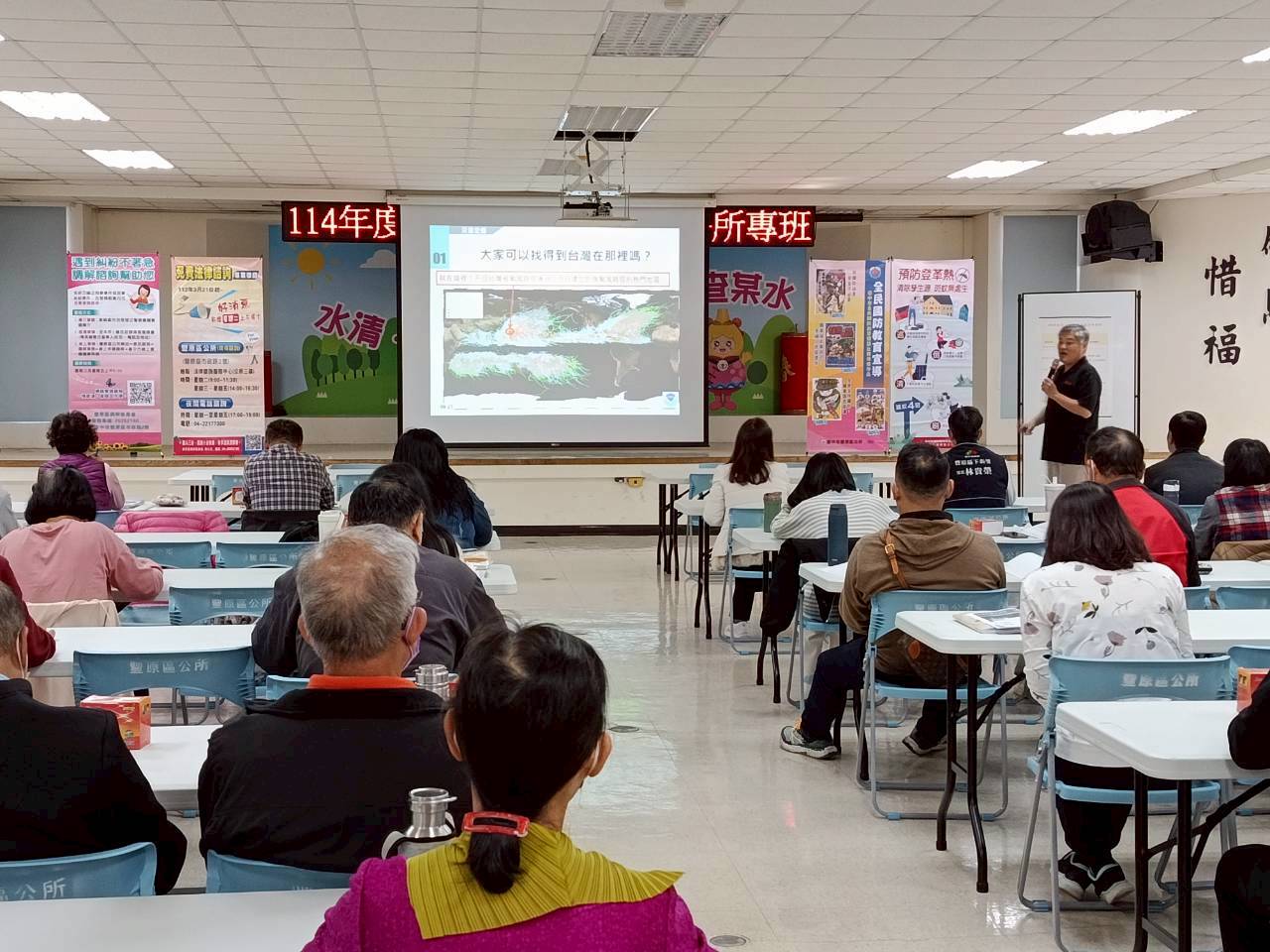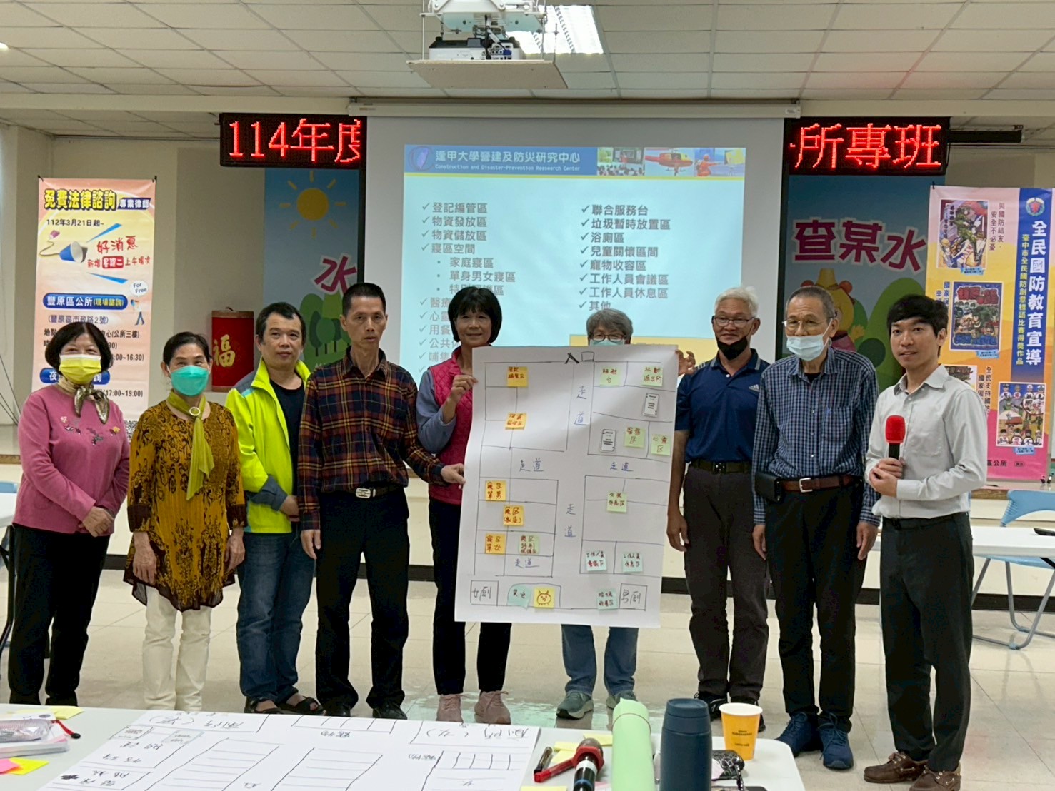 為提升區內災害應變能量、強化全民防災意識,於本年度11月22日及23日於本所四樓辦理防災士豐原區公所培訓專班,共有55位里長、鄰長、里幹事、本所同仁及防災士成員參加,透過本次防災士訓練,提升自助、互助及公助機制,並學習到防災基本知識技能,未來於災時可進行初期應變,從減災、整備、應變到復原四大面向,提升本區的防災能量,並擴展地方政府防救災能量。